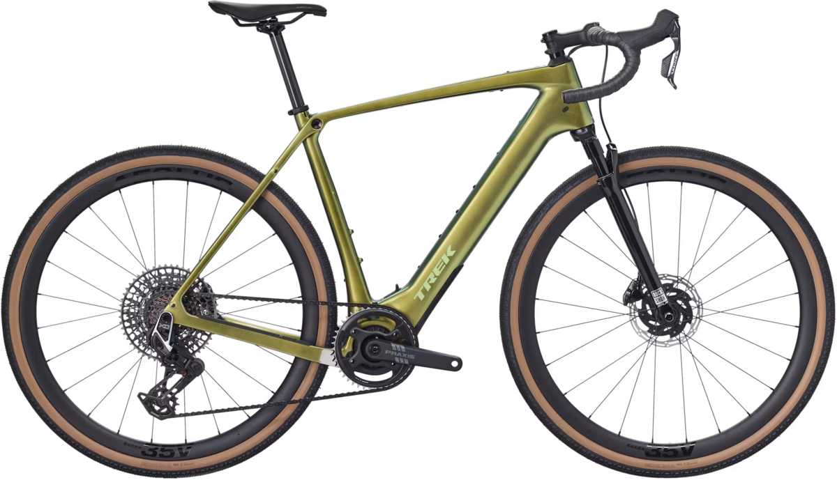 Checkpoint+ SL 7 AXS is an electric gravel bike built to take you on your most far-out adventures. An OCLV Carbon frame keeps things light, a TQ HPR60 motor provides a smooth and quiet boost up to 28mph, while a 40mm RockShox Rudy XPLR suspension fork keeps handling confident and relaxed on the roughest roads. SRAM's Force AXS 12-speed drivetrain delivers smooth, wireless shifting, and OCLV Carbon Bontrager Aeolus Elite 35V wheels and a carbon seatpost damp vibrations while keeping the weight down.